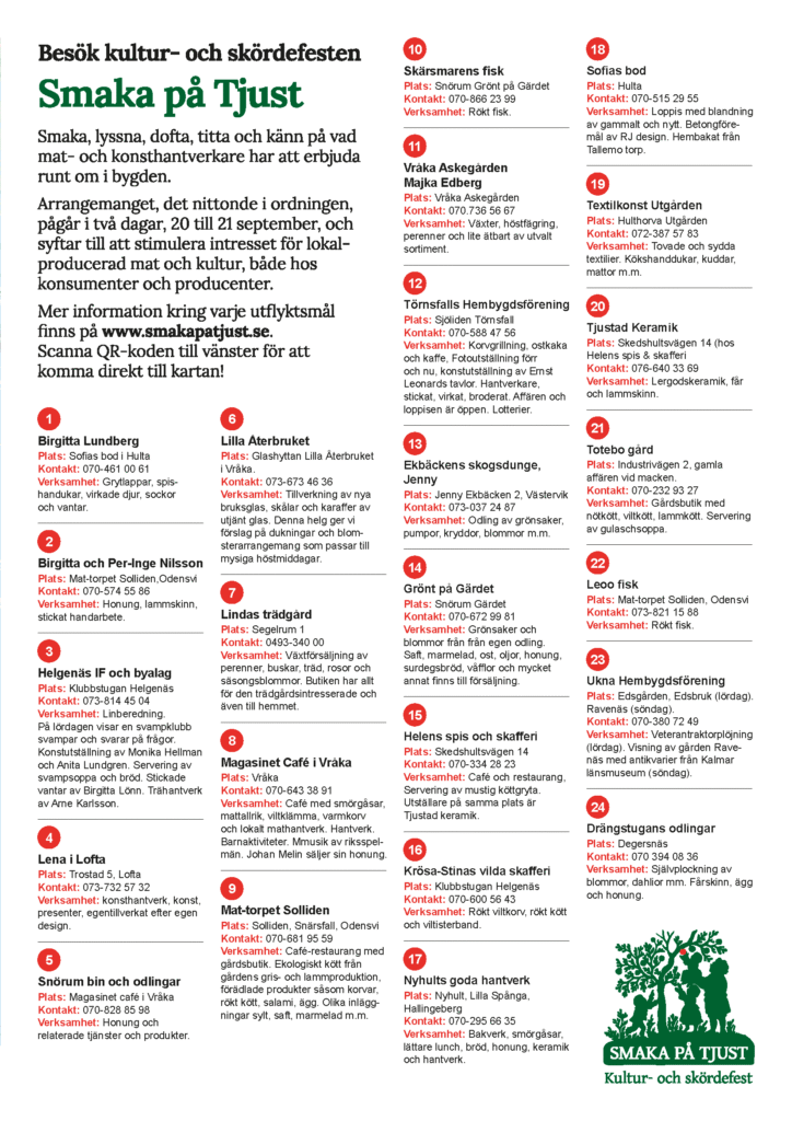 Lördag 20 septemberKl. 10.00 – 16.00Söndag 21 septemberKl. 10.00 – 16.00